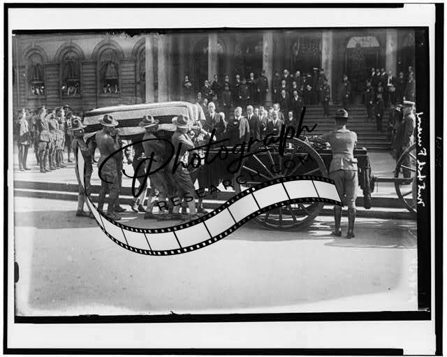 Title: [Soldiers carrying casket of former New York City mayor John Purroy Mitchel up steps]