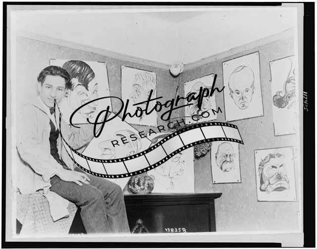 Rosendo Gonzalez,with his caricatures of celebrities,1925,Artist