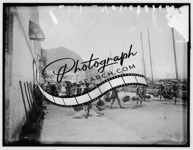 Coolies,basket yokes,contract laborers,piers,wharves,docks,Hong Kong harbor,1890