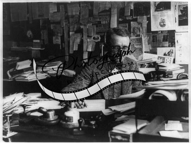 Men at Desk reading typewritten pages,Office,wearing glasses,1909-1932