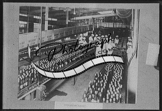 Inspecting catsup,condiments,food industry,assembly line methods,workers,1910