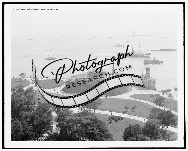 New York harbor,Battery Park,buildings,pavilions,boats,steamers,ships,NY,c1906