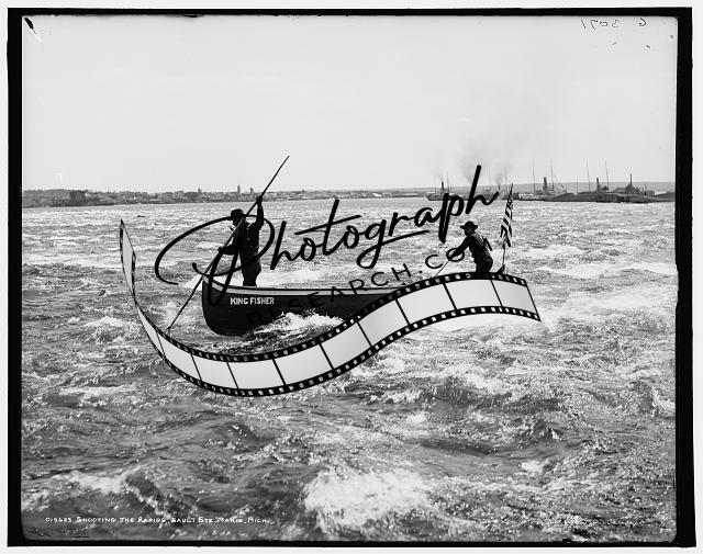 Shooting rapids,Saint Marys River,boats,King Fisher,Sault Stephen Marie,MI,c1905