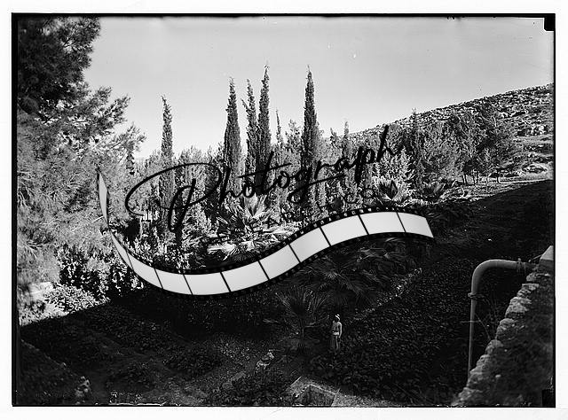 Title: Solomon's Pools & ancient aqueducts. General view of the three pools from hill on N.E. side.