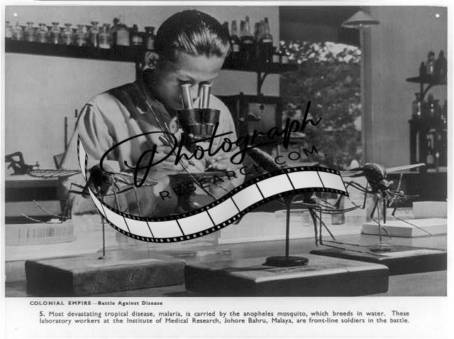 Colonial Empire,Laboratory Worker,Microscope,Malaria Parasites,Johore Bahru,1949