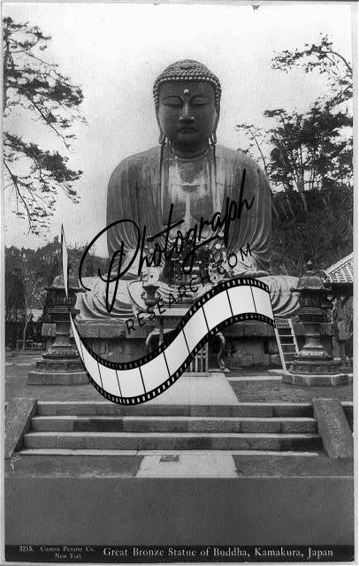 Great bronze statue,monuments,religious figures,men,Buddha,Kamakura,Japan,c1900
