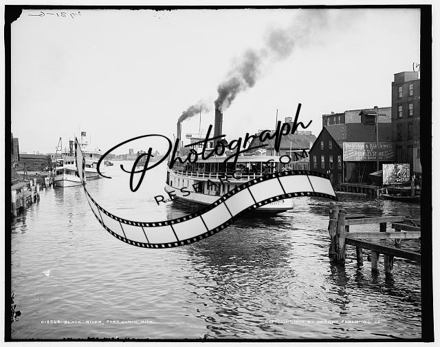 Black River,steamers,boats,ships,Port Huron,Michigan,Detroit Publishing Co,c1905