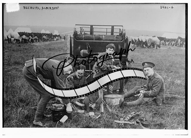 Recruits,Aldershot,England,United Kingdom,men,pots,Bain News Service,horses