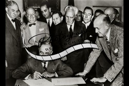 President Truman signing military aid bill,Connally,Chapman,Johnson,Kee,Eaton