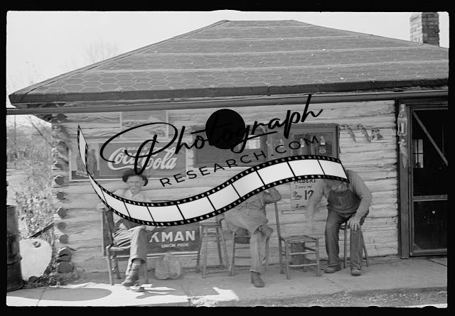 Noon-day siesta in front of a lunchroom at Helmsburg,Indiana,IN,1935,FSA,Jung,2
