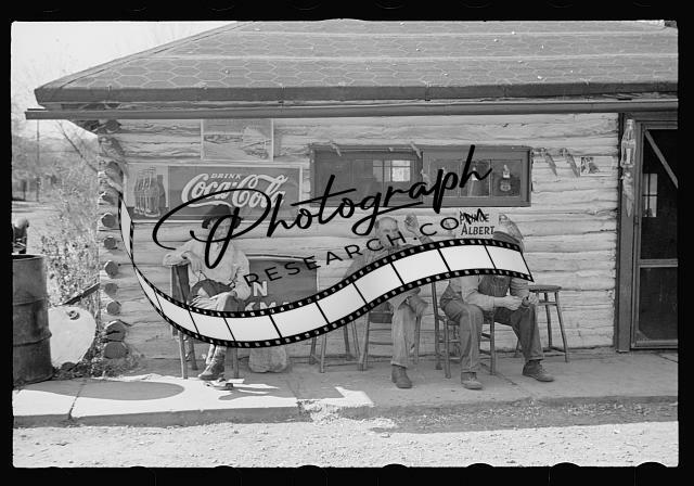 Noon-day siesta in front of a lunchroom at Helmsburg,Indiana,IN,1935,FSA,Jung