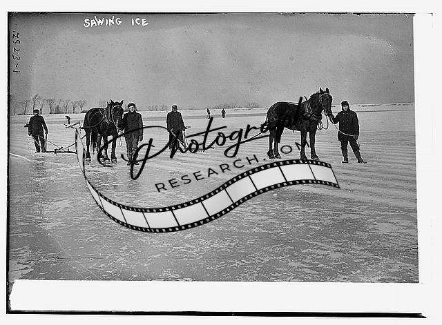 Sawing ice,men,horses,1910-1915,Bain News Service