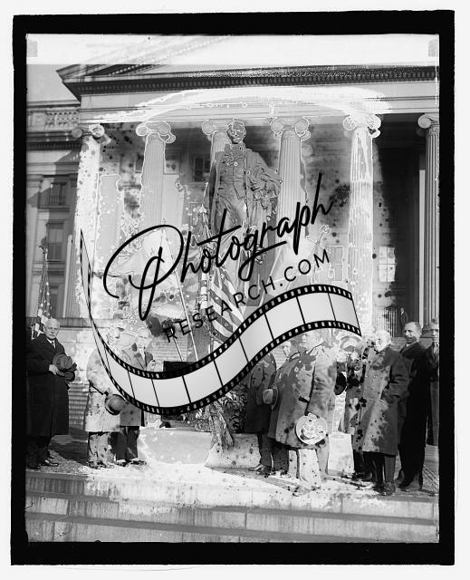 Andrew Mellon placing wreath on statue of Alexander Hamilton,1/11/27,1927
