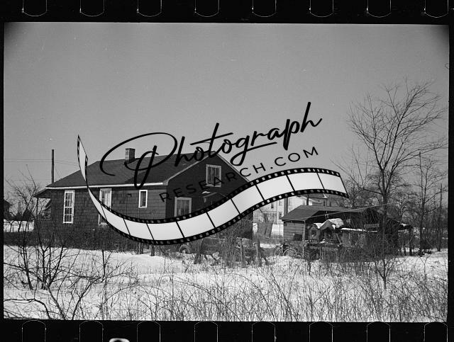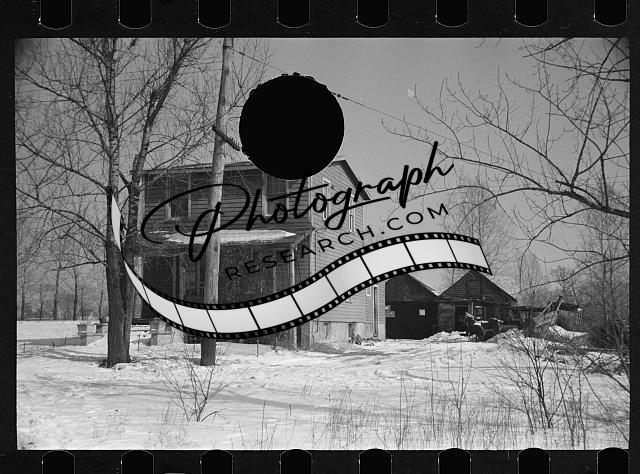 Buildings,houses,homes,snow,winter,fences,poles,trees,1935