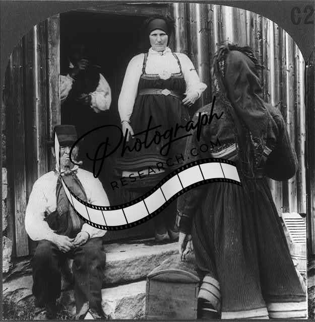 Norwegian woman,start for America bidding,people farewell,immigration,c1922
