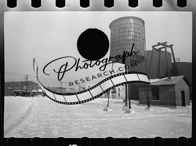 Buildings,structures,water towers,snow,winter,tracks,1935