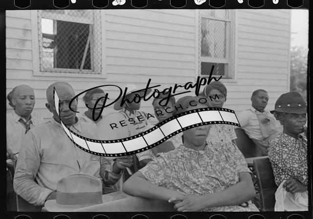 Title: Negro clients listening to visiting public health official, Southeast Missouri Farms. La Forge, Missouri