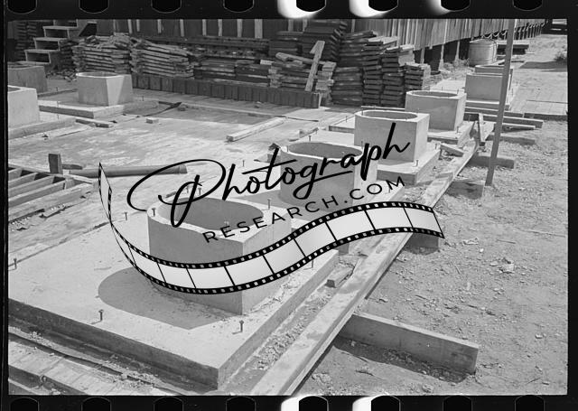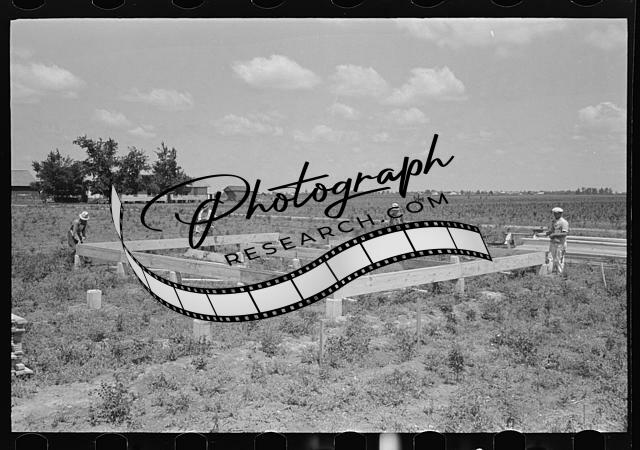 Title: Barn plant. General view of precut and marked stacks. Southeast Missouri Farms Project