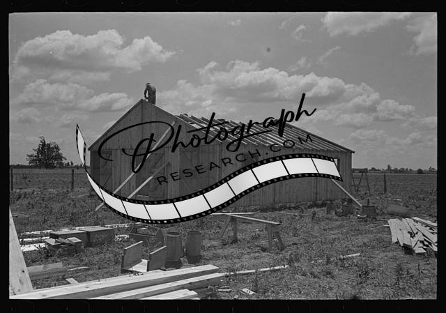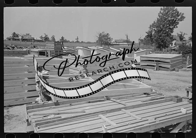 Title: Porch plant. Placing joists in floor frames. Southeast Missouri Farms Project