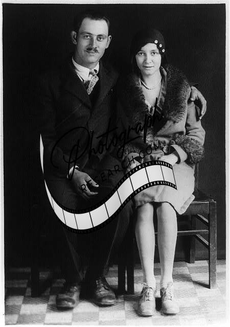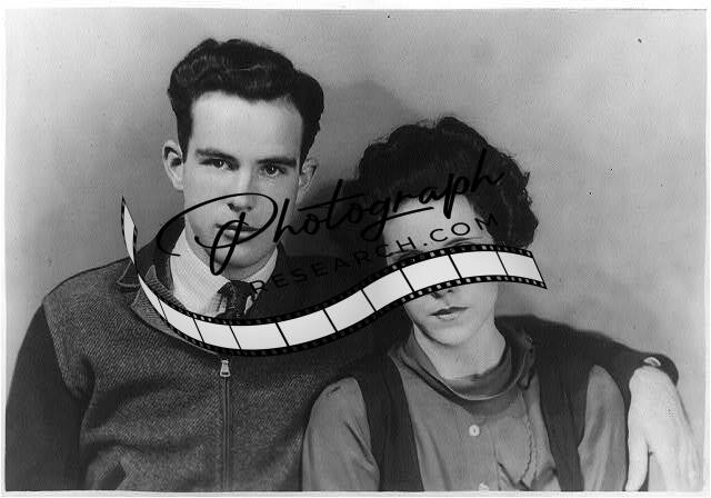Title: Southern Appalachian people, descendents of Europeans: couple - busts, man with curly hair, wearing suit and tie, woman wearing hat