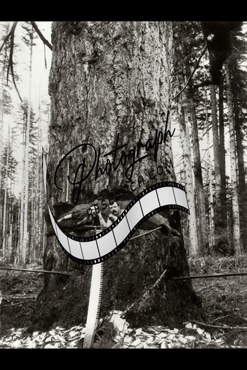 Yellow fir tree,Lumberjacks,lying in cut in tree,c1901