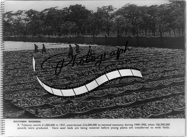 Tobacco,seed beds,watered,young plants,transferred,fields,Southern Rhodesia,1950