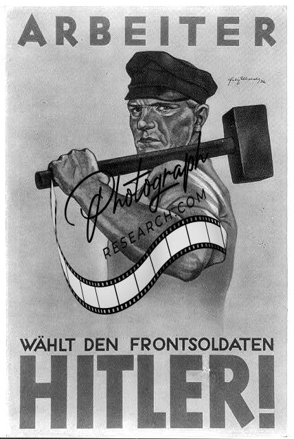 Ger. - Nuremberg - Reichsparteitag, 1933; half-tone of photo: Heroic poster of worker
