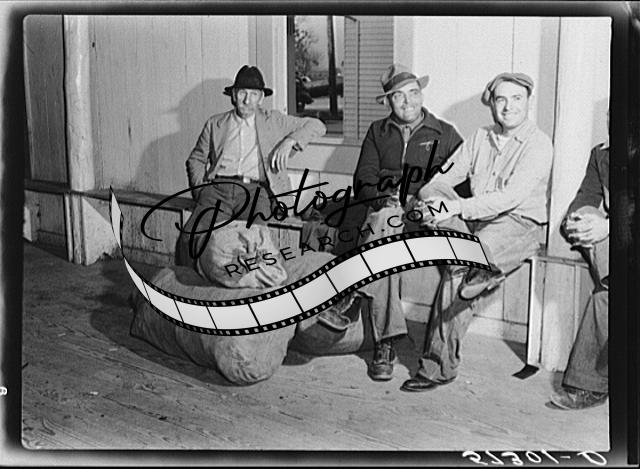 Title: Spanish muskrat trappers waiting in dance hall during fur auction sale. Delacroix Island, Louisiana