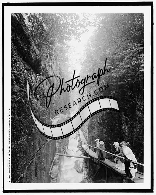 Looking down flume,canyon,Franconia Notch,White Mountains,New Hampshire,NH,c1910