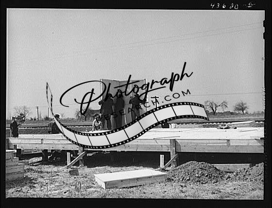 Title: Putting up a wall on a prefabricated house that is being built by FSA (Farm Security Administration) to house some of the farmers who had to move out of the Spartanburg Army camp area. Pacolet, South Carolina