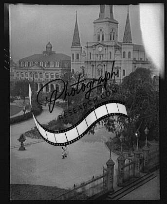 St Louis Cathedral,spires,Cabildo,New Orleans,Louisiana,LA,Arnold Genthe,1920