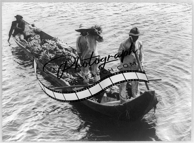 Men in boat transporting bananas to city markets,Panama,1890-1923