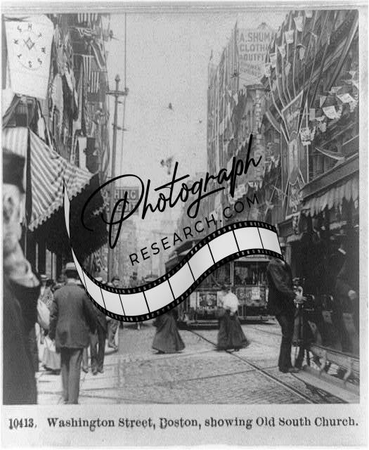 Washington Street,Boston,Massachusetts,Old South Church,c1895,Streetcars
