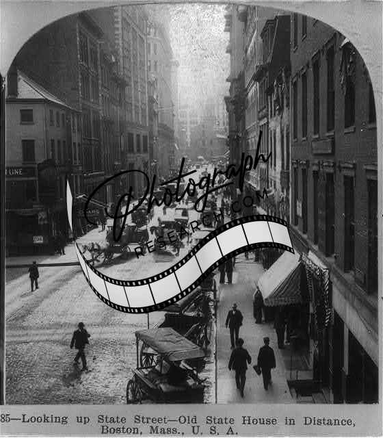Looking up State Street,State House,Boston,Massachusetts,MA,c1901,Traffic