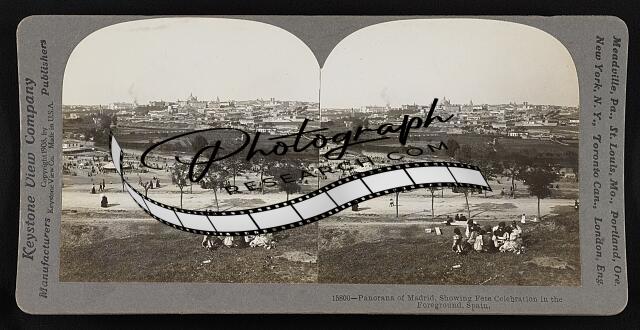 Panorana of Madrid, showing fete celebration in the foreground, Spain