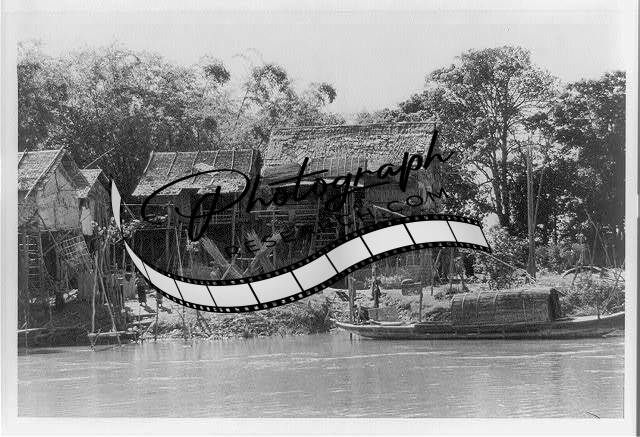 Small fishing village,boat,Tonlé Sap,Lake,basin,lower Mekong River,Cambodia,1958