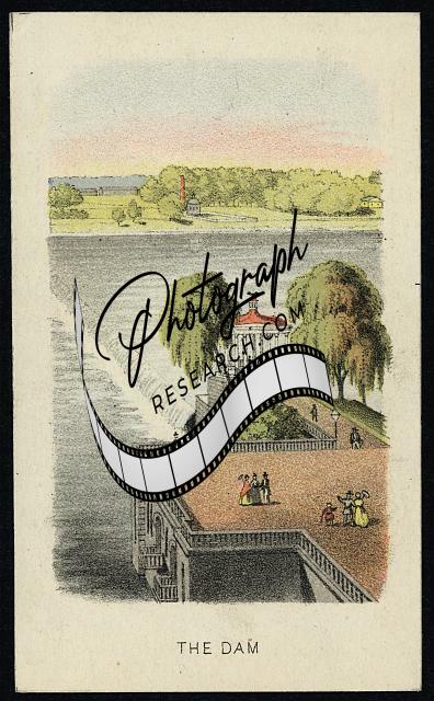 Dam,spillway,gazebo,pedestrian mall,souvenir booklet,Fairmount Park,PA,c1870