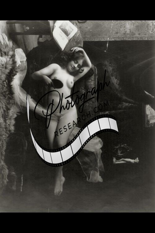 Admiration,nude young woman lying on sofa,looking in mirror,1903,arm above head