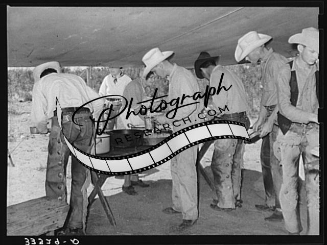 Title: Cowboys of the SMS Ranch eating dinner. Ranch near Spur, Texas