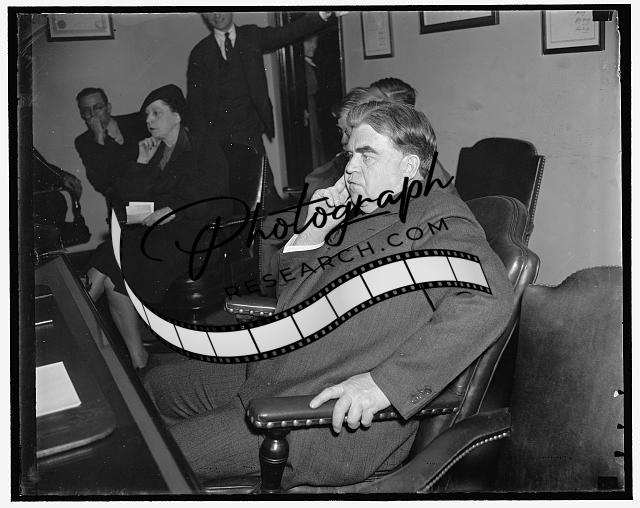 Title: SRO sign out on Lewis' press conference. Washington D.C., March 6. John L. Lewis, President of the United Mine Workers and organizer of the CIO plays to packed house every time he holds a press conference these days. The standing room only sign was hung yesterday when the labor leader called the newsmen together and told them of the conference of the Executive Coucil to be held in Washington next Tuesday, 3/6/1937