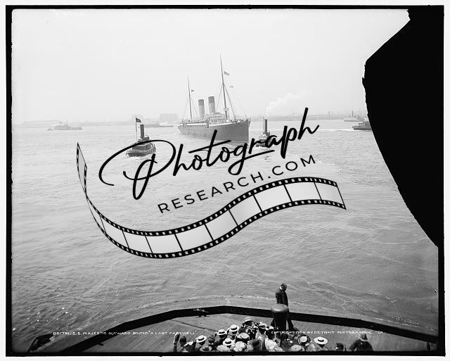 SS Majestic,outward bound,clearing dock,last farewell,ocean liner,boats,c1903