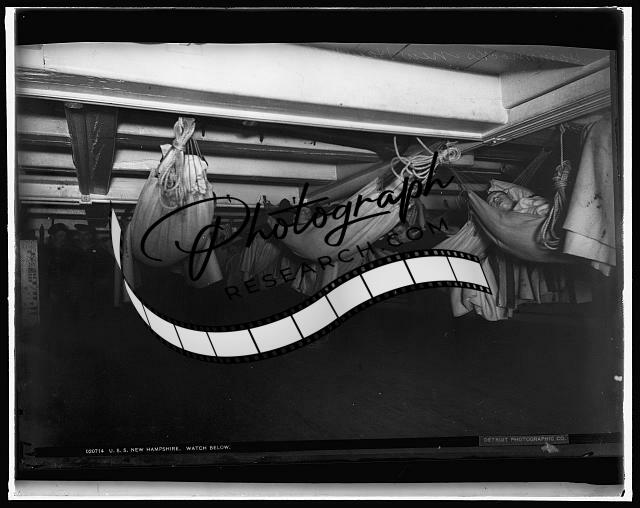 USS New Hampshire,watch below,American battleships,sailors,boats,hammocks,1900