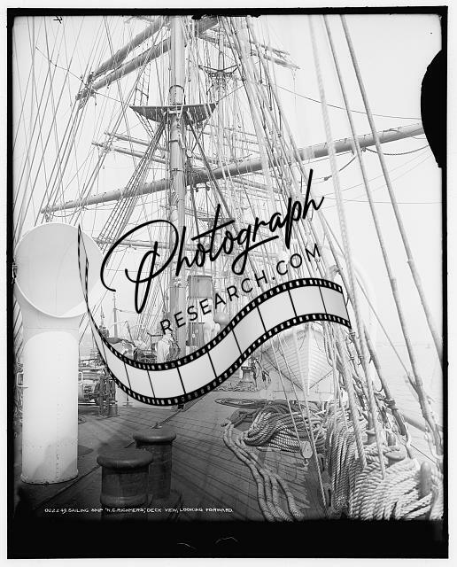 Sailing ship RC Rickmers,deck view,looking forward,equipment,rigging,boats,1906