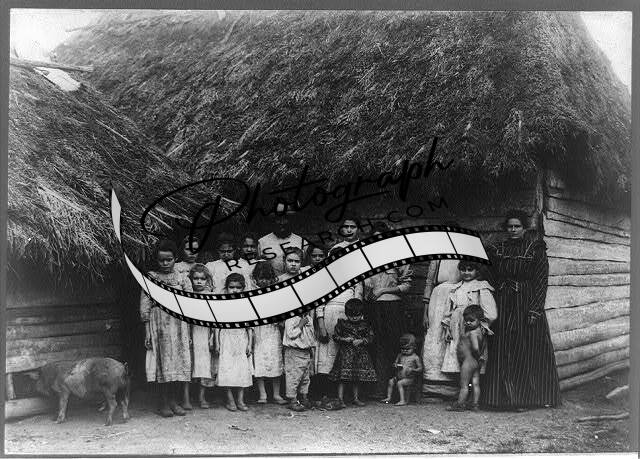 Men,women,children posed,thatched-roof huts,Pinar del Río Province,Cuba,1890