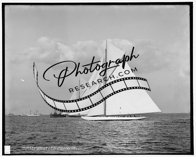 Shamrock II crossing finish line,Columbia,America's Cup Races,regattas,1901