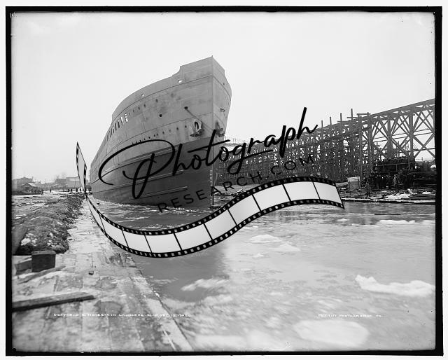 Launch,SS Tionesta,ways,boat,ship industry,steamers,Wyandotte,Michigan,MI,c1902