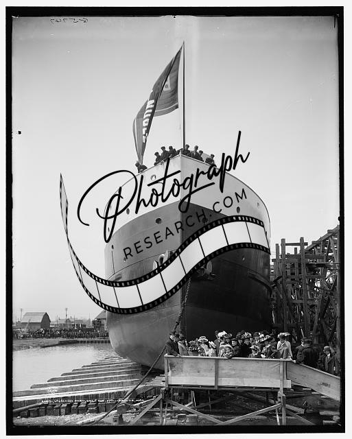 Launching party,Benjamin J Noble,cargo ships,boats,Wyandotte,Michigan,MI,1909