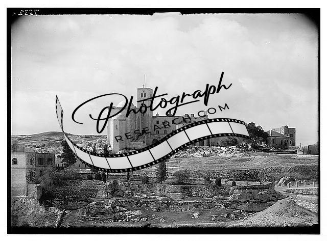 Title: St. Andrews Church, Jerusalem. St. Andrew's Church showing 'Y' bldg. [i.e., building], K.D. [i.e., King David] Hotel & Citadel.
