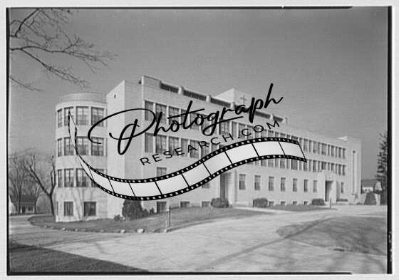 Title: St. Joseph's Hospital, Stamford, Connecticut. Entrance facade from right