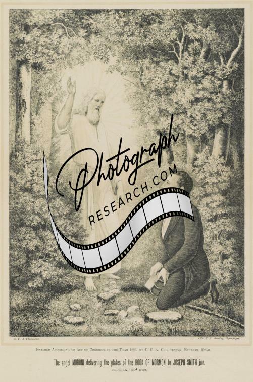The angel Moroni delivering the plates the Book of Mormon to Joseph Smith 1886